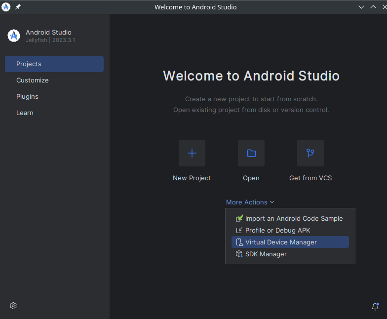 Não precisaremos criar nenhum projeto, apenas abrir a ferramenta “Virtual Device Manager”.