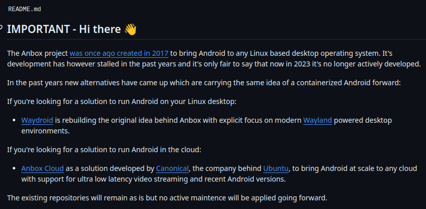 Até no ano passado, nós tínhamos uma boa opção para rodar apps Android no Linux, o Anbox.
