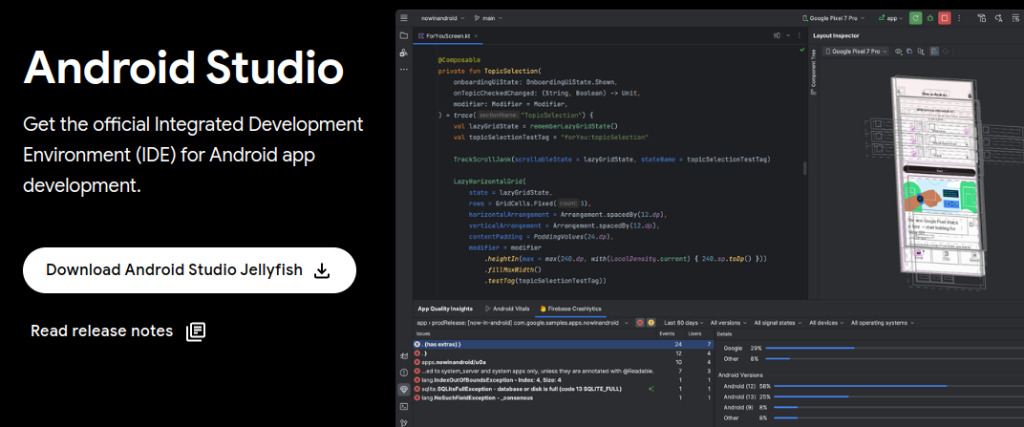 O primeiro passo é acessar o site do Android Studio e fazer o download do Software AQUI.